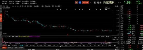公司2015年2月16日正式挂牌新三板,7月10日开始做市。兴荣高科的股价也是从做市后一路下滑,由最初的8元,下滑至目前的1.95元,市值也从4.9亿元缩水至目前的1.19亿元,下降75.77%。