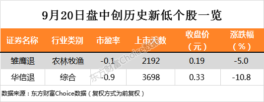 东方财富Choice数据显示,今日盘中有2只个股股价创历史新低,分别为雏鹰退、华信退。