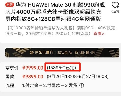 也就是说,天猫京东两大平台Mate30整体预售已超13万台。加上其他平台和未公布预售量的华为官网,华为预售明显超过13万部,甚至有20万部或更好!天风国际分析师郭明錤此前发布的报告中预计,华为Mate 30系列预估2019年出货量约2000万部。