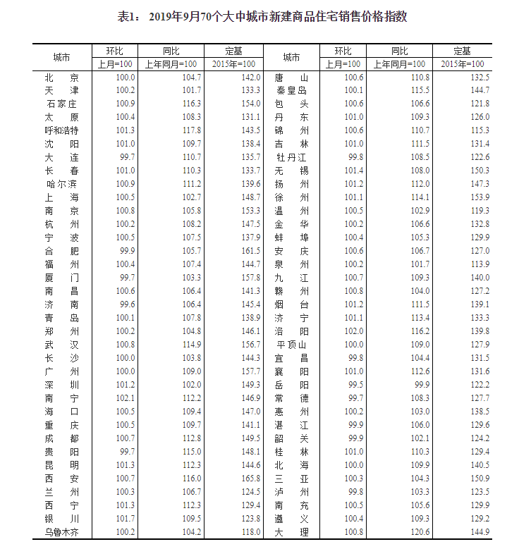 国家统计局今日发布了2019年9月份70个大中城市商品住宅销售价格变动情况统计数据。对此,国家统计局城市司首席统计师孔鹏进行了解读。