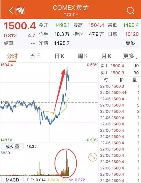 吊诡的是,在市场较为平静的当下,黄金却突然飙升,同时伴随放量,突破1500美元关口。