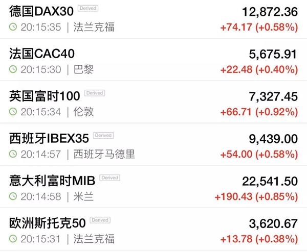 欧元区“不降息”的动作基本符合市场预期,因此也未给欧元区带来太大波动。在消息公布后不久,欧洲主要股指变化不大。