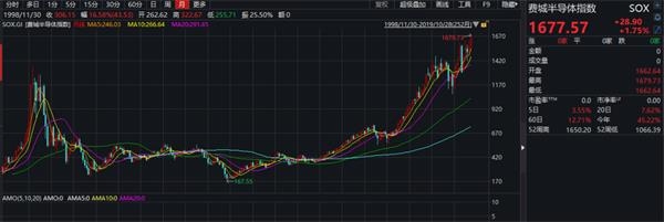 数据显示 ,美国大型科技股集体收涨,苹果涨1%,亚马逊涨0.89%,奈飞涨1.82%,谷歌涨1.95%,Facebook涨0.8%,微软涨2.46%。费城半导体指数亦创历史新高。
