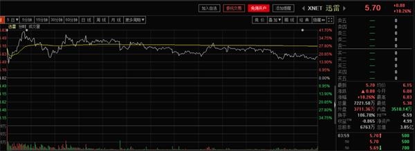 昨晚,迅雷盘中一度暴涨逾40%,截至收盘,股价有所回调,但涨幅依然超过18%,不过走势上却出现冲高回落的态势。此前,迅雷已经出现了单日翻倍的行情,被A股市场一些投资者视为区块链概念的风向标,该股后续的表演,将会直接决定A股市场这个“网红板块”的高度。