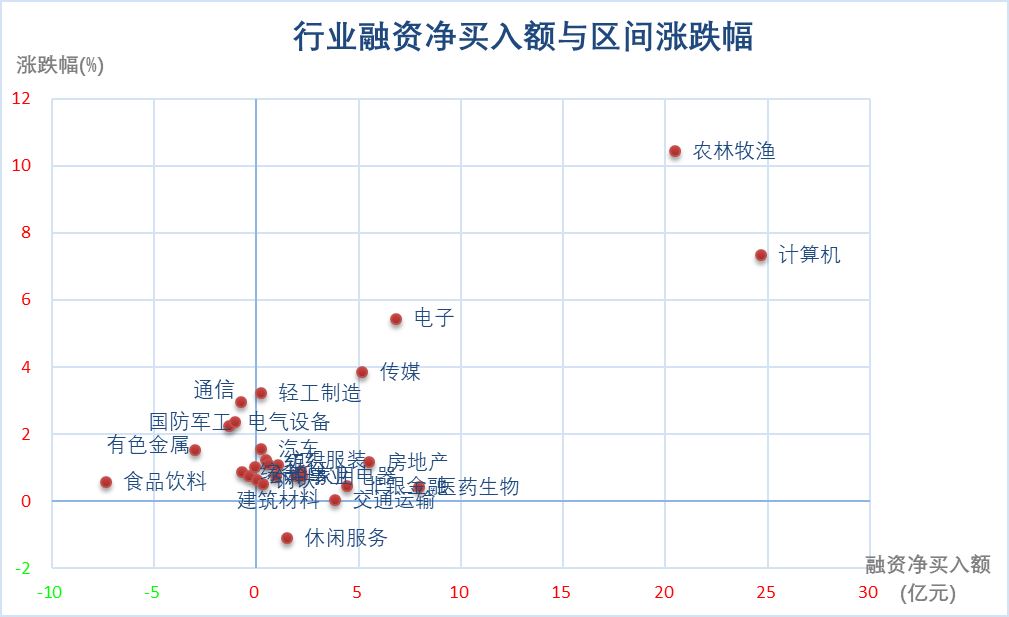 分行业统计来看,最近6个交易日,融资客对20个行业进行了加仓,仅对8个行业进行了减仓。计算机、农林牧渔、医药生物、电子行业加仓金额居前,分别净买入24.67亿元、20.46亿元、7.95亿元和6.83亿元。杠杆资金的涌入对相应版块的市场表现起到一定的提振作用。农林牧渔、计算机、电子三个行业涨幅位居全市场前三位,近6日分别上涨了10.44%、7.33%和5.44%。