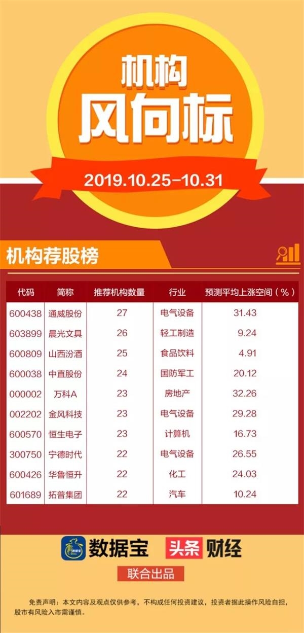 机构风向标:三季报尾声机构扎堆推荐这些股 最高看涨空间超40%