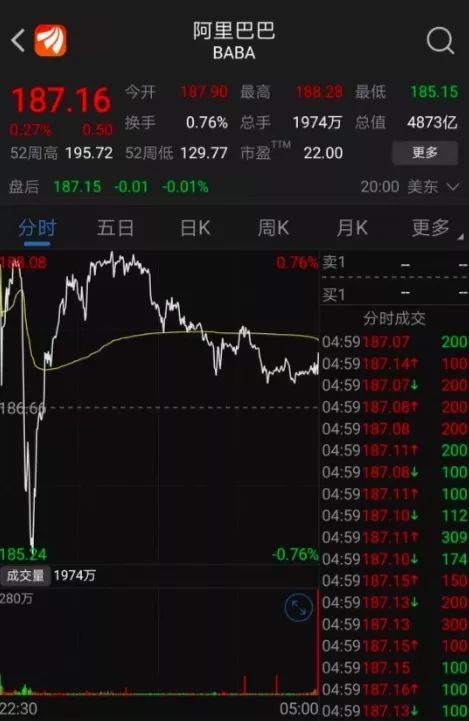 数据显示,阿里巴巴最新市值为4873亿美元。截止11月7日美股收盘,阿里巴巴在美股的最新收盘价为187.16美元,市值为4873亿美元(约合人民币3.4万亿元)。有分析人士指出,以“96折”进行询价,意在吸引大型投资机构,给予投资者一定的利益刺激。