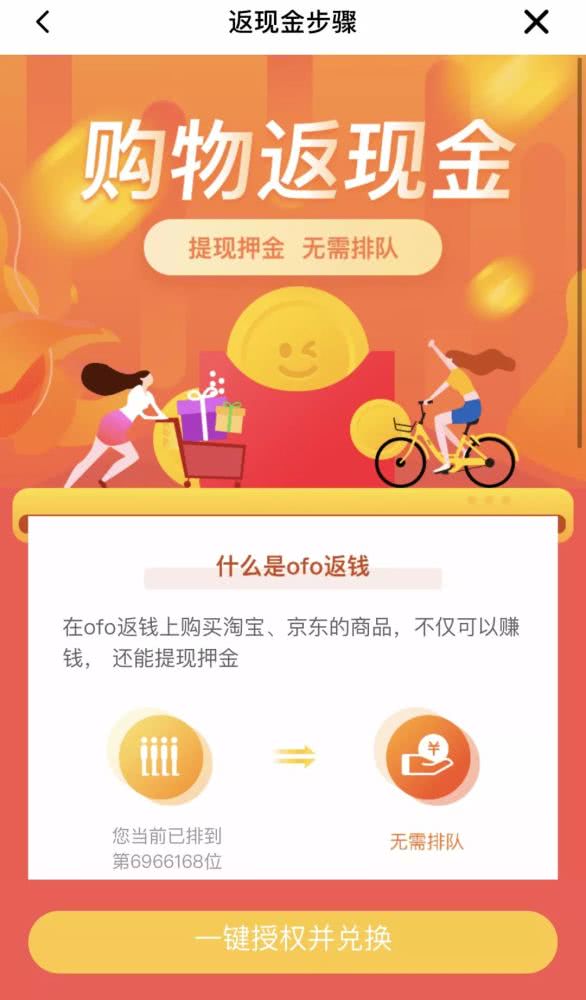 什么是ofo返钱?根据APP官方介绍,在ofo返钱上购买淘宝、京东的商品,不仅可以赚钱,还能提现押金。