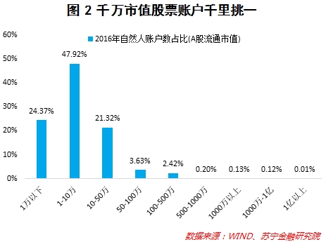 首先,通过炒股和炒期货来实现财富自由的概率极低。以数据为例,2016年12月A股流通市值超过1000万的账户个数为6.36万户,在所有A股账户中占比仅为0.13%。考虑到很多市场参与者可能在投资失败后注销账户、彻底离开市场,再考虑到千万账户也许是先财富自由再来炒股、而不是一分一分把账户从零炒到千万级别的,这样通过炒股把账户做到千万级别的实际占比应该更低。