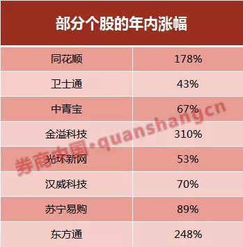 在区块链50指数的样本股中,约有相当数量的个股在2019年内出现了翻倍行情,其中,金溢科技年内股价涨幅超过310%,同花顺的股价自年初至今,也疯狂上涨了178%。而在12月24日该指数发布首日,部分纳入的个股表现也相当不错,其中利欧股份强势涨停,市值186亿。