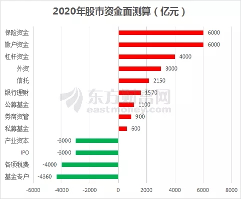 拿海通证券来说,其预测2020年增量资金将达到1.1万亿元,其中保险资金和散户资金占据大头,均有6000亿元。相反,基金专户、产业资本、IPO均呈净流出,分别为4360亿元、3000亿元和3000亿元。