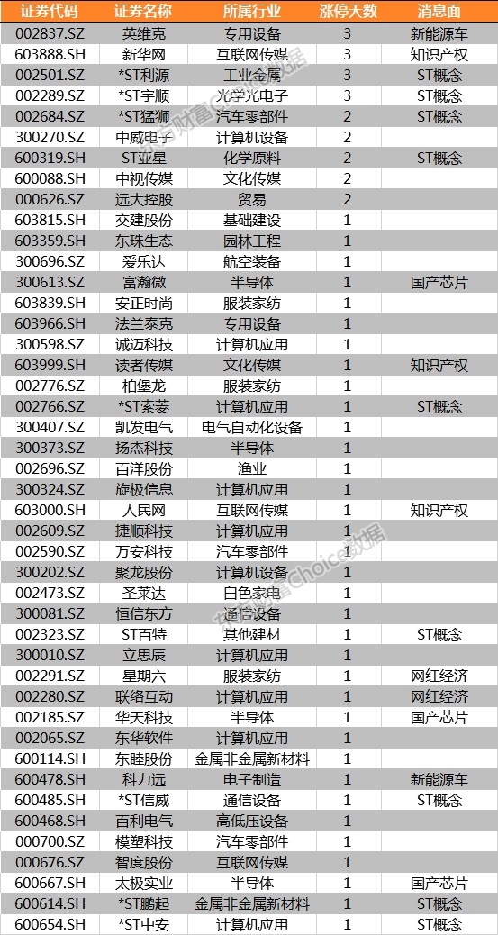 其他股涨停股统计