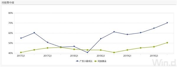 从2017年以来的持股集中度看,刘格菘在管理广发小盘成长混合基金时敢于重仓,前十大重仓股占比基本上高于同类基金。截至2019年底,广发小盘成长混合持股集中度达到70.06%,为2017年以来最高。因此,分析广发小盘成长混合的前十大重仓股,指向性意义更大。
