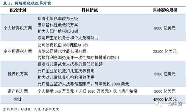 特朗普政策主体内容和细节(单位皆为美元,数值为10年总额)
