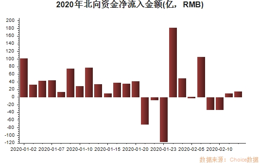 这从北向资金近来的动态或许就能感受到,东方财富Choice数据显示,1月份北向资金净流入383.92亿元。春节后,在疫情肆虐之时,外资在短短9个交易日再次净流入301.08亿元,其中节后首个交易日更是疯狂净流入181.89亿元。