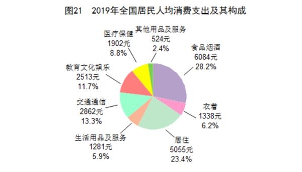 2019年全国居民人均可支配收入30733元,比上年实际增长5.8%,与GDP增长基本同步,快于人均GDP增速。按常住地分,城镇居民人均可支配收入42359元,扣除价格因素,比上年实际增长5.0%。农村居民人均可支配收入16021元,扣除价格因素,比上年实际增长6.2%。城乡居民人均可支配收入比值为2.64,比上年缩小0.05。