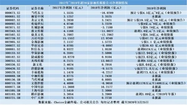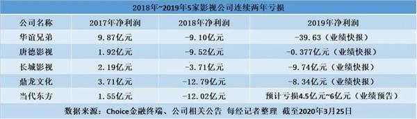 2019年仅5家盈利 2020年全体影视股业绩“走钢丝”