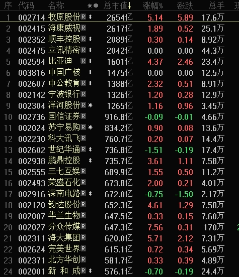农业板块龙头超过海康威视,晋级为中小板市值冠军!