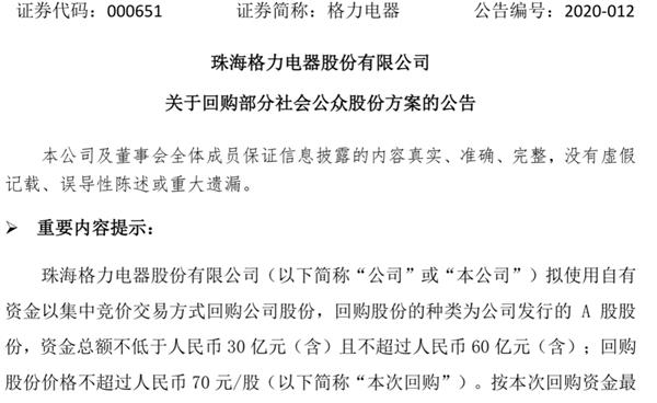 格力电器大手笔回购