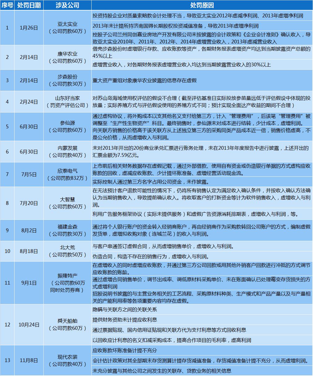 聚焦315: 2016年13家财务造假公司遭行政处罚