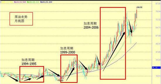 不过,也有分析认为,虽然美联储加息后,大宗商品的价格短期往往承压,但放到更大时间范围看,加息对大宗商品价格往往是利好。在前三次加息周期中,大宗商品均有不错的表现,比如在2004年6月至2006年6月的加息周期中,金价却录得52%的涨幅,原油接近翻番,铜价涨了200%。