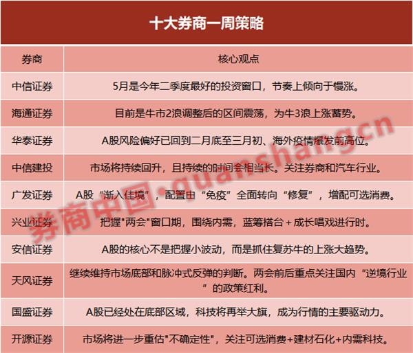 十大券商策略:A股渐入佳境!抓住5月上涨时间窗口 蓝筹搭台+成长唱戏进行时