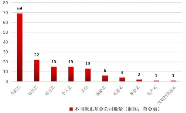 和其他派系相比,“银行系”公募数量并不多。据数据统计,目前共有公募管理人148家(含券商、保险资管公司),其中,“券商系”为主流,数量多达69家,而“银行系”仅15家。