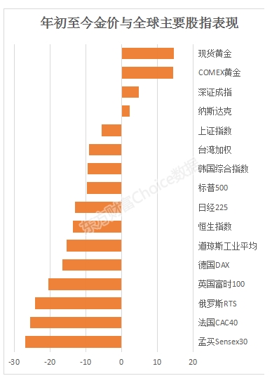 今年以来,国际现货黄金价格和COMEX黄金期货价格均涨超14%,远远跑赢全球主要股指。此外,全球最大黄金ETF——SPDR Gold Trust持仓也在时隔7年后首次突破1000吨。