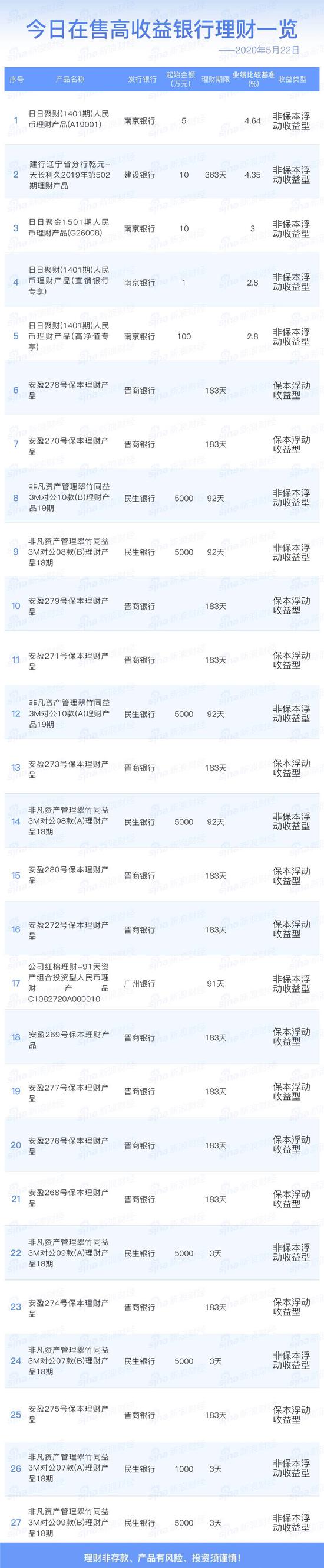 5月22日在售高收益银行理财产品一览