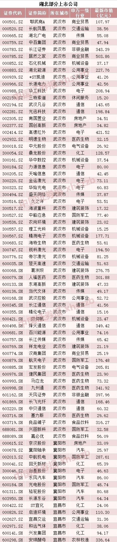 中证君梳理了襄阳、宜昌、武汉三地上市公司情况。
