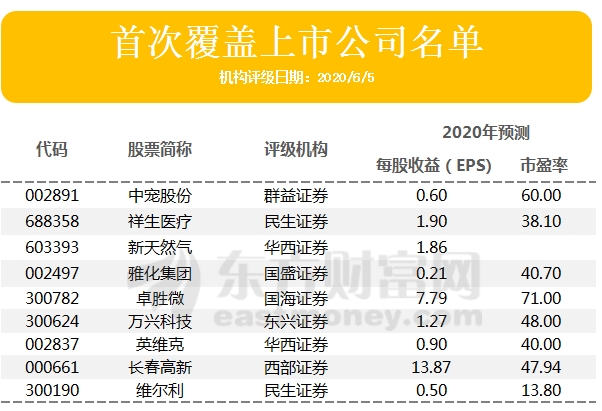 此外,当天还有8家公司股票评级被首次覆盖。以下为6月5日被机构首次覆盖的上市公司名单: