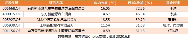 目前,新能源车主题基金主要有主动管理和指数型基金。追求稳定收益,明确看好相关产业链的投资者可选指数基金;风险偏好高的投资者建议选择历史业绩好,持仓股成色好的主动管理类基金低位布局。