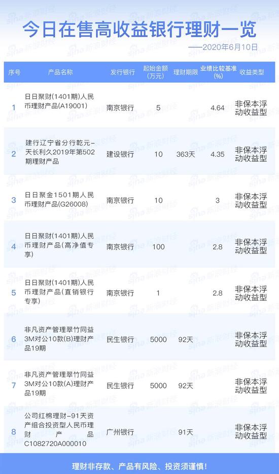 6月10日在售高收益银行理财产品一览