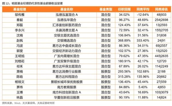 在天风证券看来,个人投资者借助基金入市往往选择过往收益率优秀的产品,明星基金经理颇受追捧,助推爆款基金的出现,这进一步强化了少部分公司的牛市。