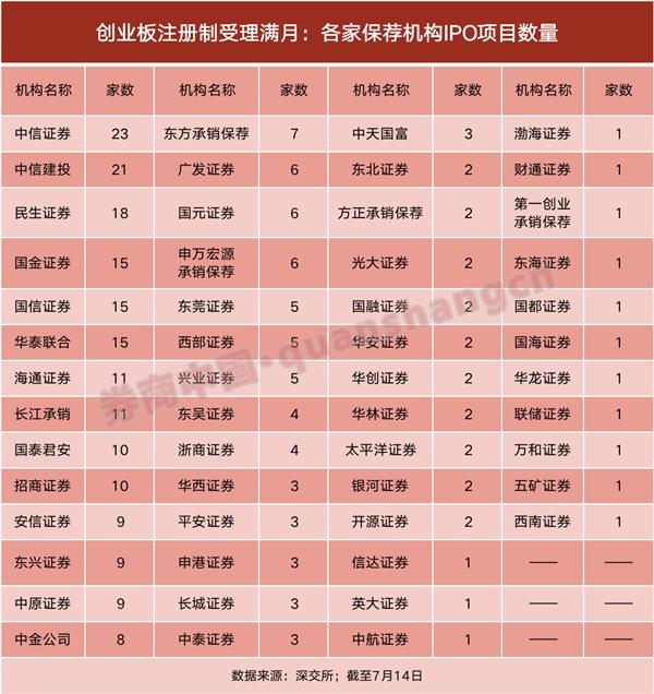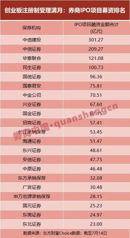 新创业板投行哪家强?IPO中信项目最多 中信建投募资总额最大!