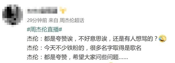 随后一行人开始和留言互动,但由于大多都是对周杰伦的夸赞、表白或者让他唱歌,周杰伦表示,不是不唱,没有乐器,直播清唱似乎也不太好。