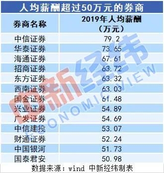 不过排名靠后的中小券商可就没有这么“拉仇恨”了。数据显示,华林证券人均薪酬为26.54万元,在39家券商中敬陪末座。