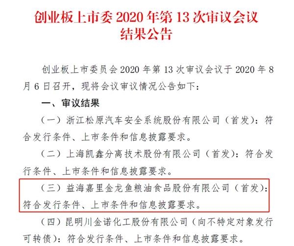 益海嘉里金龙鱼粮油公司过会了,创业板上市也快了!