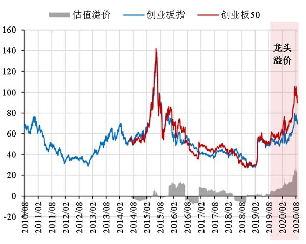 从现象来看,自2017年7月起大盘指数较中盘和小盘获得估值溢价,近一年来创业板50相对于创业板指的估值溢价显著提升,本质在于资金倾向于选择龙头盈利的确定性,从而进一步提高了流动性。