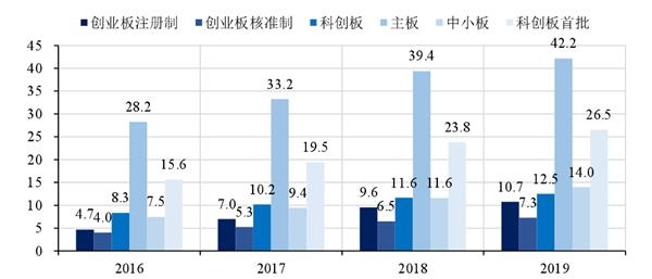 创业板首批18家企业2019年的平均营收规模为10.7亿,领先核准制下的7.3亿元,但与科创板、主板及中小板的12.5亿、42.2亿、14.0亿略有差距。