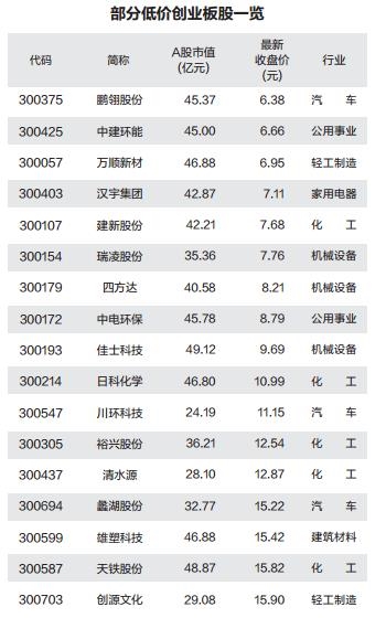 33只创业板股低价滞涨