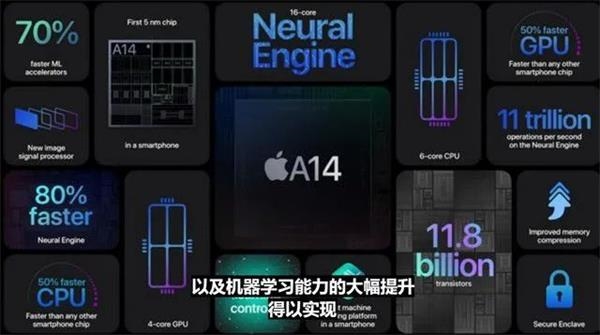 配置方面,iPhone 12 系列最大的亮点在于其搭载的新一代A14仿生芯片,这也是目前智能手机行业首款采用5纳米制程的芯片。苹果方面称,A14仿生芯片的速度和能效双双提升,拥有迄今最快的中央处理器和图形处理器,与竞争对手最快的智能手机相比,最高可超50%。