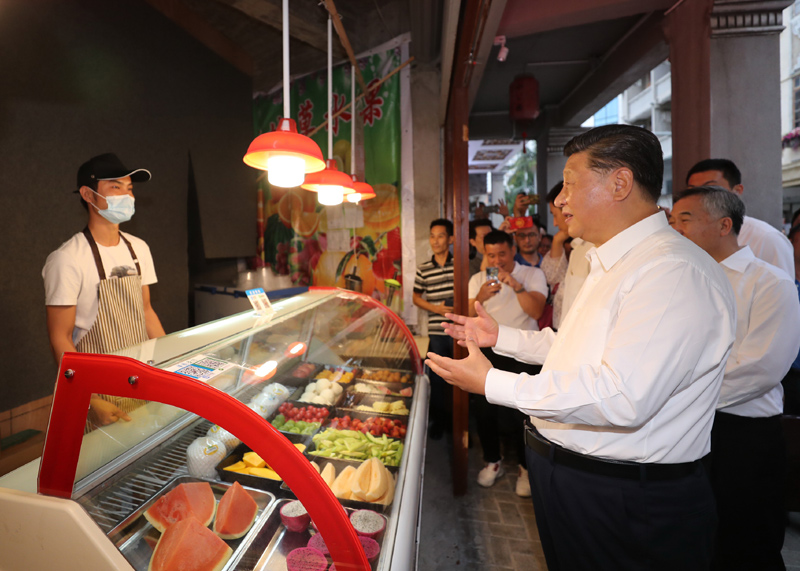 牌坊街是潮州市的文化地标之一,23座古牌坊连接起51条古街巷。习近平沿街步行,了解潮州市修复保护历史文化街区、打造优秀传统文化集结地等情况,并走进街边商铺,同店员、顾客热情交谈,向他们询问复商复市怎么样、生产生活还有什么困难等。习近平指出,当前我国疫情防控取得重大战略成果,经济社会正常秩序基本恢复,但外防输入、内防反弹压力还很大。要继续严格执行各项常态化疫情防控措施,为最终战胜疫情而共同努力。