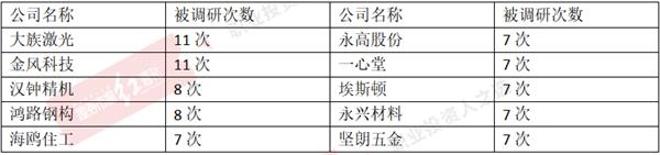 《红周刊》记者利用统计发现,从10月9日至今,短短时间机构总共对595家上市公司进行了调研,其中大族激光和金风科技被调研11次,两家公司居首。同时,鸿路钢构和汉钟精机被调研了8次,同样也排到了前四位。如果从公募基金来看,同一时间段中交银、嘉实、银华、华夏等四家公司调研次数超过了100次。
