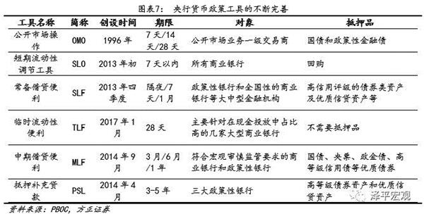抵押补充贷款(PSL):创设于2014年4月,创设初期主要是为棚户改造提供专项资金支持,后逐步扩展到重大水利工程、人民币“走出去”贷款项目等。其投放对象主要是国开行、农发行和进出口银行,同样以抵押贷款形式发放,由于项目投向具有严格的限定,其操作对于流动性的影响相对较小。