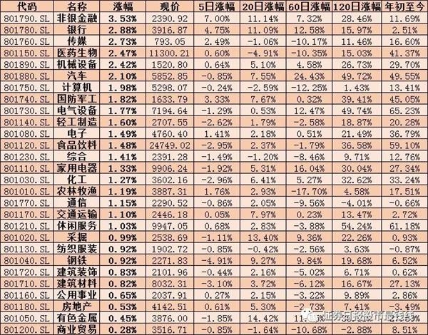 首先,周二逾八成个股实现上涨,尽显普涨格局。从行业分类来看,申万一级28个行业当日全部上涨。其中,非银金融、银行、传媒、医药生物、机械设备、汽车等6个行业指数涨幅均超2%。个股方面,有3276只个股上涨,占可交易个股总数的80.5%。