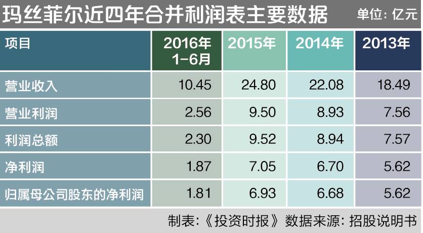 记者查阅玛丝菲尔招股说明书发现,2013年至2015年及2016年6月各期末,该公司资产总计分别为18.92亿元、23.28亿元、27亿元、36.33亿元,净利润分别为5.62亿元、6.70亿元、7.05亿元、1.87亿元,总体呈稳步增长态势。但是,从债务风险考量,其偿债能力有逐步走低趋势。