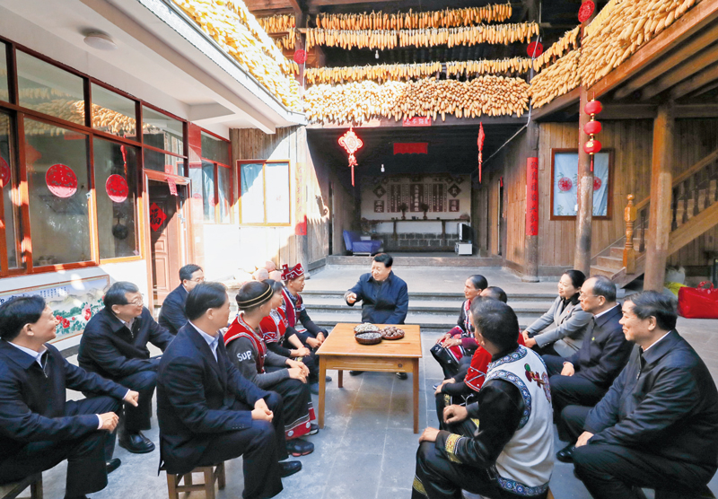 2020年1月19日至21日,中共中央总书记、国家主席、中央军委主席习近平来到云南,看望慰问各族干部群众,向全国人民致以新春祝福。这是19日下午,习近平在腾冲市清水乡三家村中寨司莫拉佤族村,同村民李发顺一家聊家常,详细询问脱贫情况。 新华社记者 鞠鹏/摄