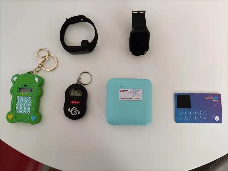 工行研制的可视卡、手表手环、充电宝、老年拐杖、报时器、老年警报器等各种类型的数字人民币硬件钱包。