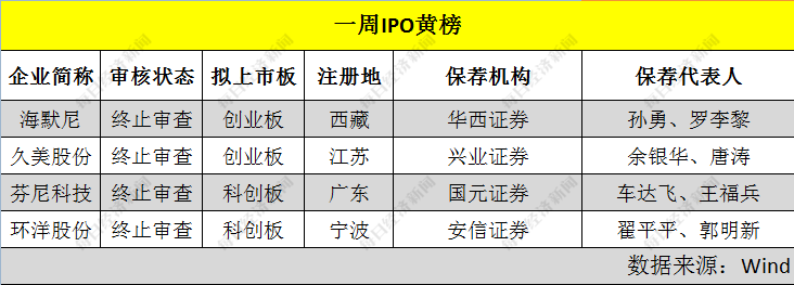 由此,国内IPO市场一度出现撤回潮。从最新的情况来看,最近几周撤回IPO的公司,依然是存在的。上周,便有4家公司撤回IPO,分别是海默尼、久美股份、芬尼科技和环洋股份,它们全都是瞄准科创板或创业板。
